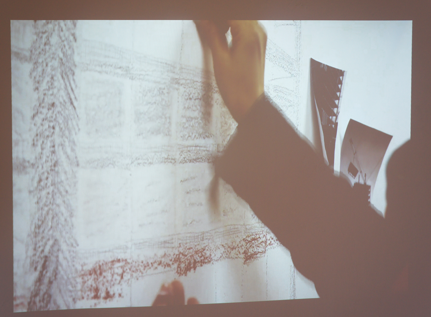 I explore insignificant and often discarded objects to open them up to new ways of seeing. The pieces of gravel gathered in a drawer and the projection on the wall of me drawing a building under construction are an exploration of real time, ephemeral time and timelessness. The building material, tossed aside and forgotten, the building that seems like it will be there forever, drawn in pencil and conte. In asking the viewer to consider how objects carry time, a space is opened up to reconsider their value.