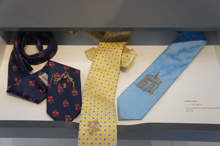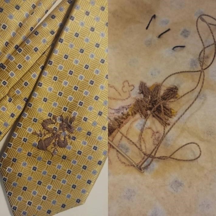 During my short, four-week stay in Florence 2017, I noticed on my walks how many street vendors were selling Florence souvenir ties. These ties became the ubiquitous Florence souvenir in my mind and came to represent the city and my walks there. I bought a series of these ties and decided that embroidering them with Florence’s own emblem and archiectures; the time required to do so, would become emblematic of my time there as a tourist explorer of place and culture.